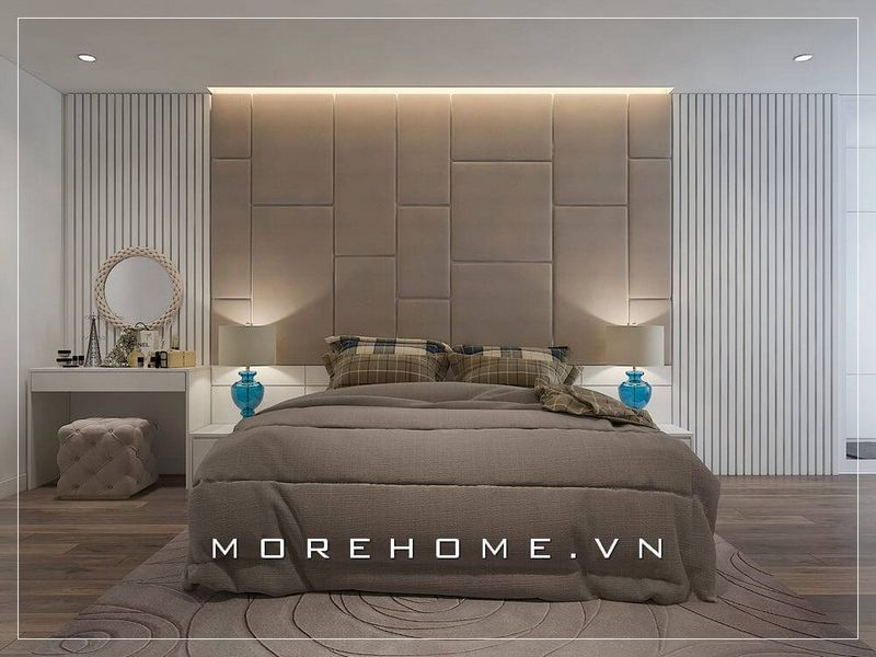 Nội thất phòng ngủ chung cư hiện đại và sang trọng, gam màu nhẹ nhàng tinh tế nhã nhặn tạo cho gia chủ những giấc ngủ thoải mái và sâu giấc hơn