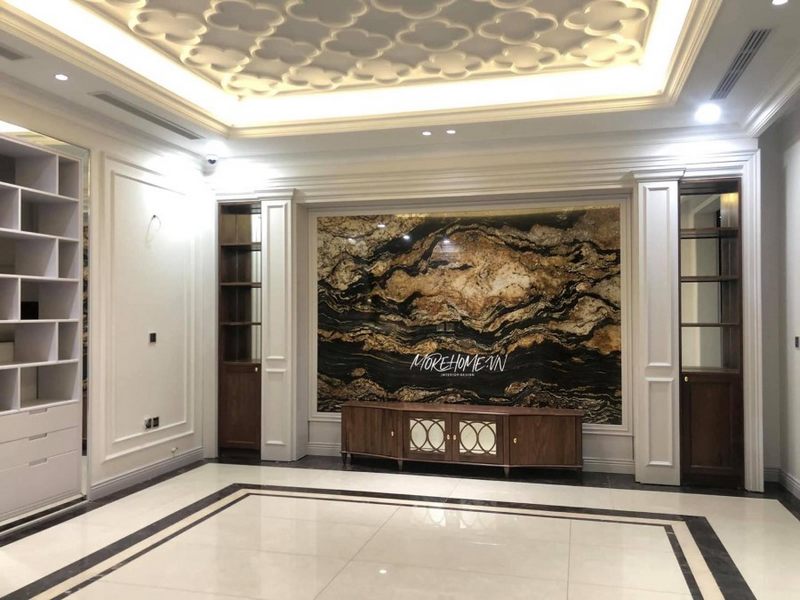 Công trình thi công nội thất phòng khách chung cư D'capital Trần Duy Hưng ở Cầu Giấy, Hà Nội, có phong cách tân cổ điển.