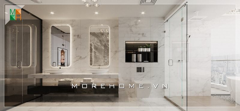 Mẫu thiết kế nội thất phòng tắm hiện đại, gọn nhẹ cho căn hộ chung cư.